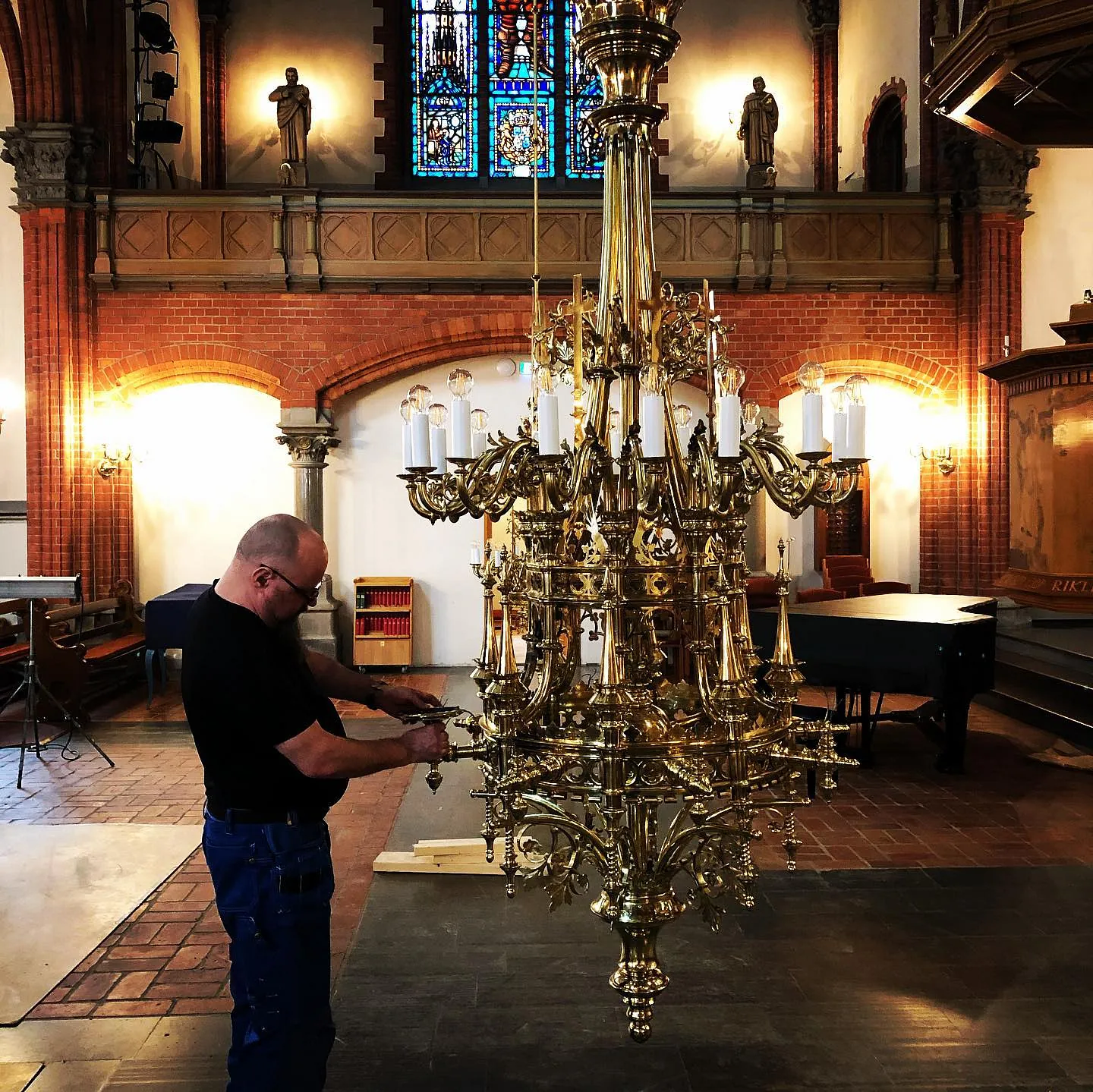 Oavsett om det gäller en kristallkrona i hemmet eller en mässingskrona i kyrkan ser vi till att dina föremål återfår sin glans.